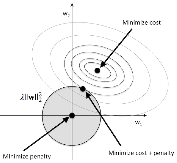 $$J(\theta) = \frac{1}{2m}(w^Tx_i - y_i)^2 + \lambda||w||_2^2$$