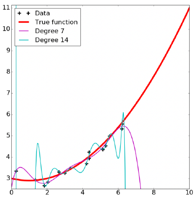 造成高方差的原因往往是模型过于复杂,对训练数据过于依赖,极小的数据扰动就会造成预测结果的巨大变化,这种情况就是过拟合