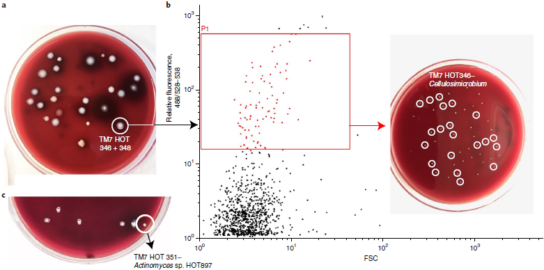 TM7 HOT346和HOT348是不同的物种,但是在同一个Cellulosimicrobium cellulans菌落中检测到