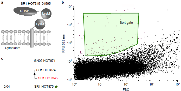 使用单细胞基因组数据SR1 HOT345,选择了一个预测的暴露于表面的糖基转移酶,也被注释为参与细胞壁合成的表面抗原