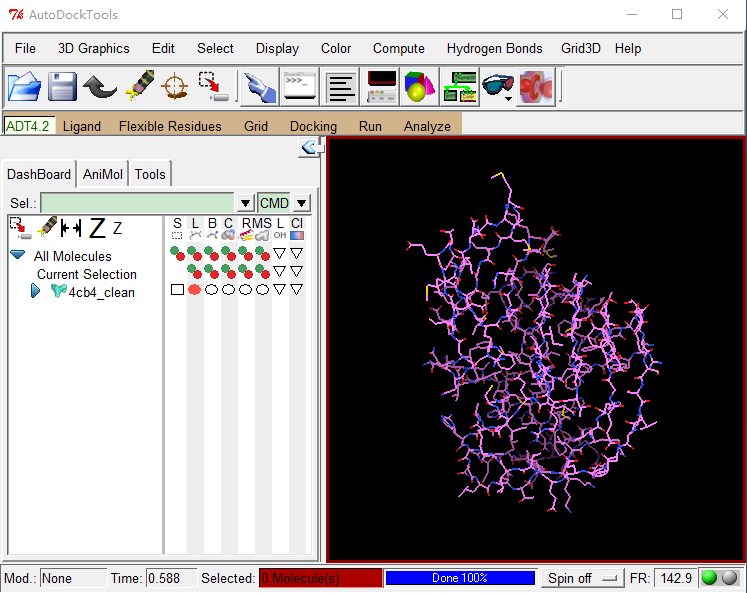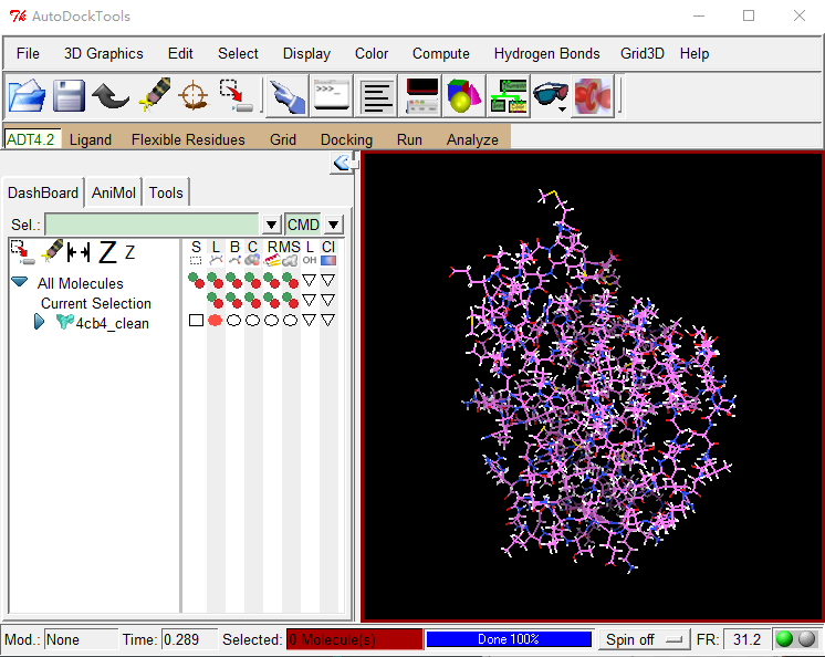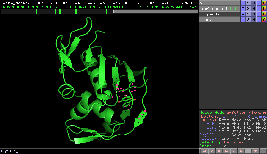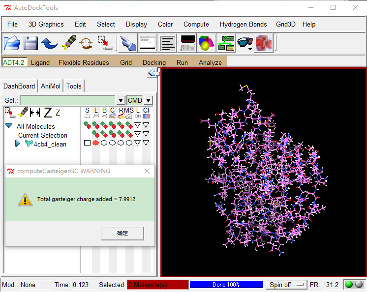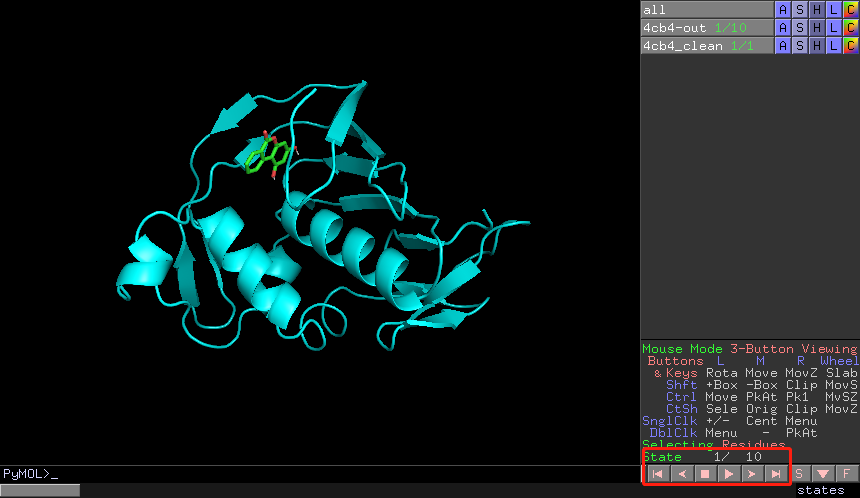 4cb4-out.pdbqt和4cb4_clean.pdb。4cb4-out.pdbqt有10个构象,可以通过右下方的方向键切换查看