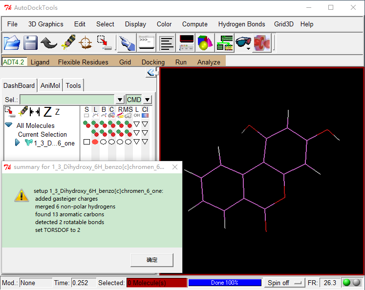 Ligand -> Input -> Open导入1,3-Dihydroxy-6H-benzo[c]chromen-6-one.mol2
