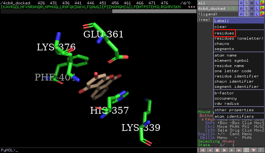 select res, resi 339+357+361+376+404,选中关键残基,命名为res