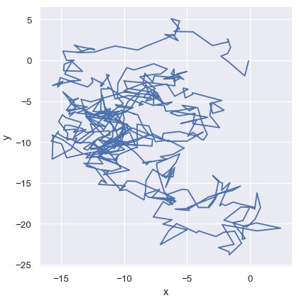 1 | df = pd.DataFrame(np.random.randn(500, 2).cumsum(axis=0), columns=['x', 'y']) |
