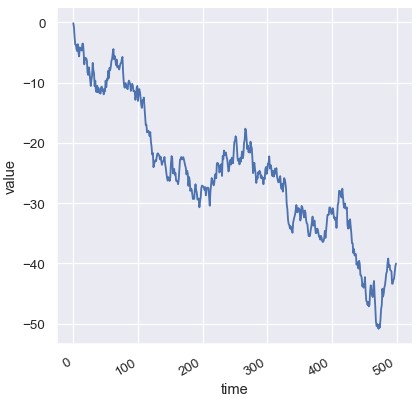 1 | df = pd.DataFrame(dict(time=np.arange(500), value=np.random.randn(500).cumcum())) |