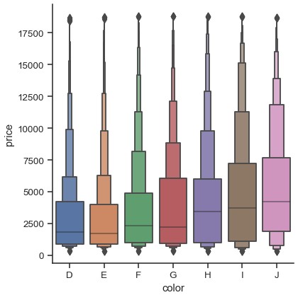一个相关的函数boxenplot()绘图方式与箱线图类似,但是针对展示数据分布形状的更多信息进行了优化。最适合用于比较大的数据集: