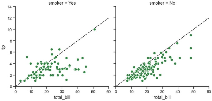 FacetGrid可以接受各种seaborn调色板 (例如,可以传递给color_palette()的内容)。也可以使用字典定义hue变量中的取值与matplotlib颜色的映射关系: