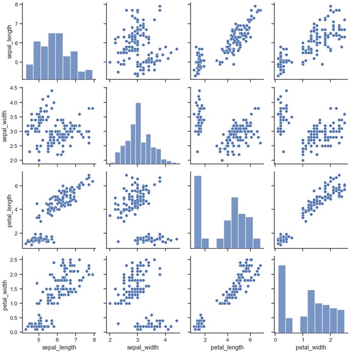 PairGrid类的基础用法与FacetGrid类似。首先初始化格子,然后向map方法传入绘图函数。pairplot()函数消除了一些复杂性,可以用于快速绘图: