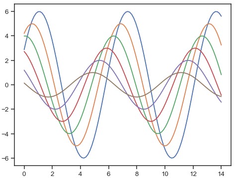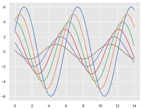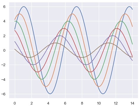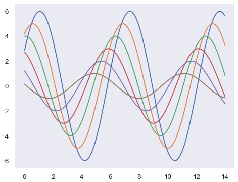定义一个绘制一系列正弦曲线的函数,用来感受调节不同风格参数产生的影响