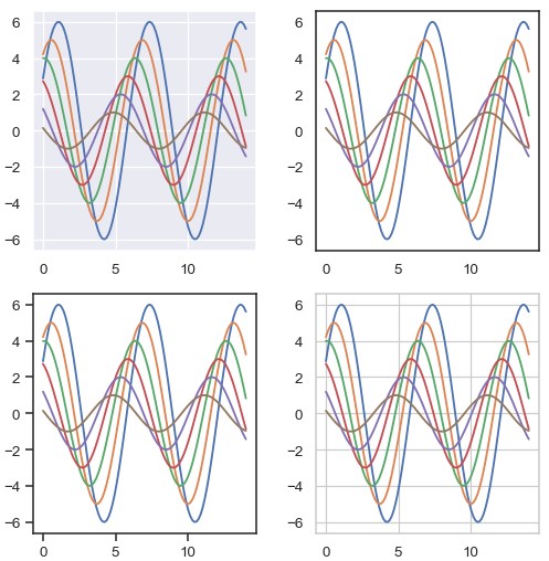 虽然来回切换也很方便,也可以在with声明中使用set_style()临时设置绘图参数。这样也能够在图中绘制不同风格的轴”
