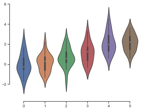 有些图需要坐标轴线离数据线条远一点,也可以调用despine()实现。如果刻度并不覆盖整个坐标轴范围,可以使用trim参数加以限制: