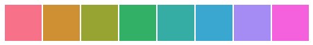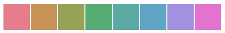 调整调色板最重要的函数是color_palette()。大部分seaborn中生成调色板的方法都可以使用这个函数提供的界面。所有带有palette参数的函数内部都是使用这个函数